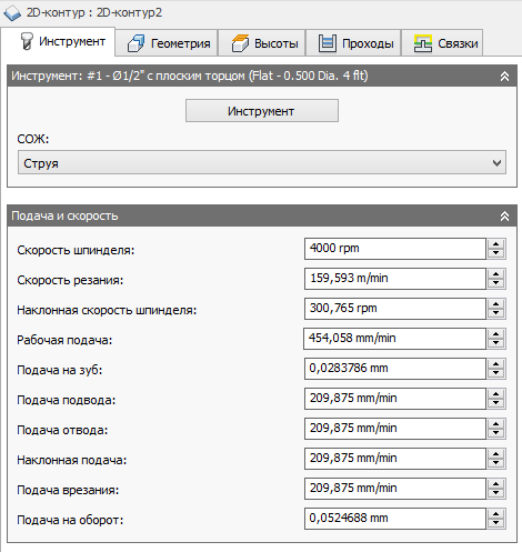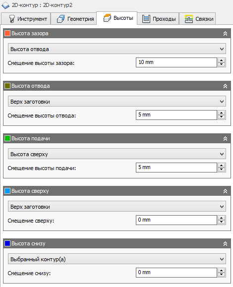 Параметр Смещение высоты подачи применяется к значению параметра "Высота подачи", выбранному в приведенном выше раскрывающемся списке, и отсчитывается относительно его значения.