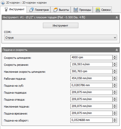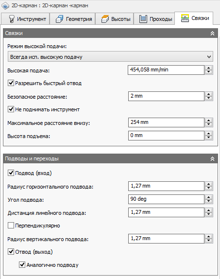 Данный параметр позволяет создать постоянную спиральную траекторию перемещения инструмента для кармана. Таким образом обеспечивается плавная работа на станке.