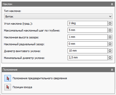 ![]() Предварительное сверление Для использования параметра предварительного сверления необходимо задать расположения точек предварительного сверления. |