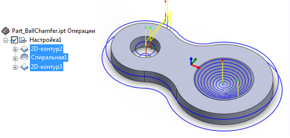 Autodesk HSM поддерживает снятие фасок с помощью концевой сферической фрезы и концевой фрезы со скругленными углами. Это может быть полезно в тех случаях, когда в детали уже используется концевая сферическая фреза или концевая фреза со скругленными углами и необходимо снять фаску на острых гранях, при этом не меняя инструмент на обычный фасочный резец. При небольших размерах фасок различия между плоской фаской, выполненной фасочным резцом и немного округленной фаской практически ничтожны.