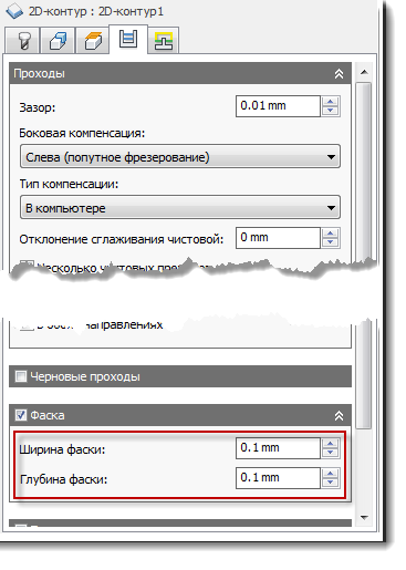 Чтобы создать фаску, просто создайте операцию 2D контур и убедитесь, что выбран инструмент концевая сферическая фреза и концевая фреза со скругленными углами.