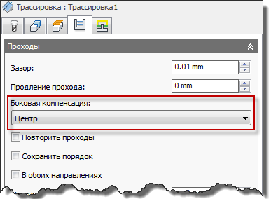 Параметр Трассировка позволяет компенсировать инструмент слева и справа от выбранных контуров.