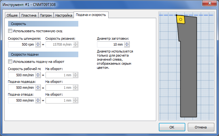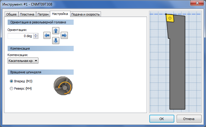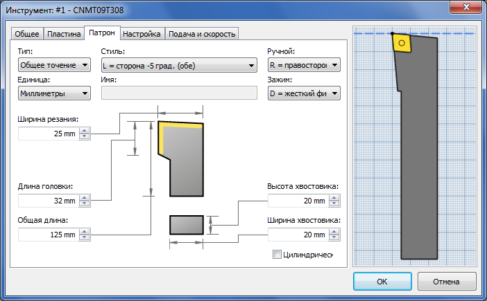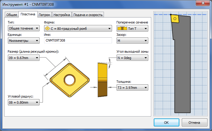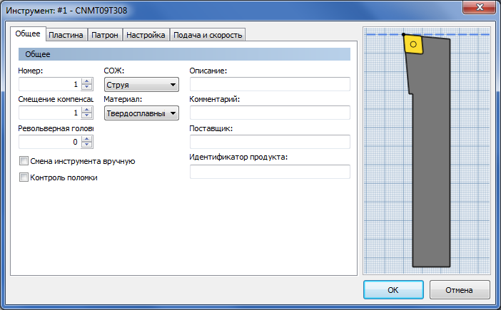 В диалоговом окне Новый токарный инструмент можно редактировать отдельные инструменты. Окно состоит из пяти вкладок.