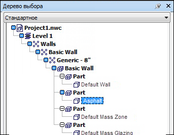 Можно настроить параметры преобразования файла Revit, чтобы изменить способ отображения файла в дереве выбора. Например, можно разделить файл на уровни, чтобы организовать иерархию моделей сначала по файлу и далее по категории, семейству, типу и экземпляру. См. раздел Разделение файлов Revit на уровни. Кроме того, составляющие элементы в файлах Revit именуются в соответствии с материалом, из которого они создаются. Например, стена может быть разбита на составляющие элементы, состоящие из асфальта или алюминия.