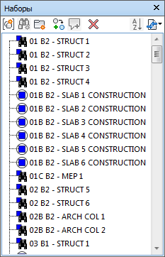 Для создания в файле Autodesk Navisworks наборов объектов и наборов поисковых запросов и управления ими можно использовать кнопки в окне Autodesk Navisworks.
