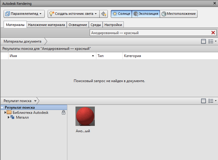 - В поле поиска в верхней части вкладки Материалы введите название материала.