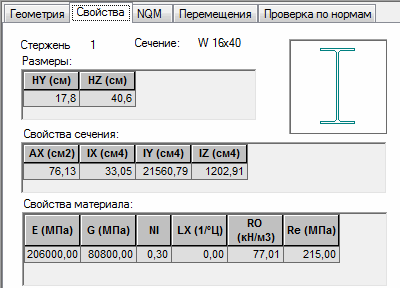 Переходим на вкладку "Свойства" в диалоговом окне "Свойства стержня".