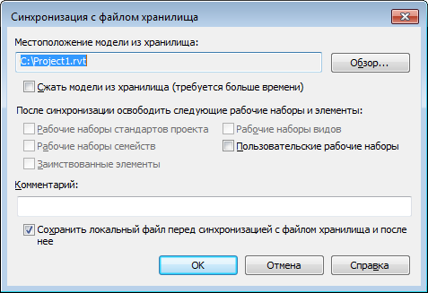 Рабочие процессы совместных проектов на основе файла и на основе сервера практически идентичны. Процессы активации рабочих наборов, синхронизации с моделью из хранилища, загрузки последних изменений в модель из хранилища и снятия прав на владение рабочими наборами тождественны.