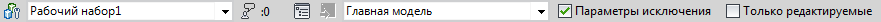 Чтобы ускорить процедуру работы с проектом, в котором организован совместный доступ, можно воспользоваться строкой состояния. Кнопка "Рабочие наборы" и раскрывающийся список "Активный рабочий набор" обеспечивают те же функциональные возможности, что и соответствующие инструменты (вкладка "Совместная работа"