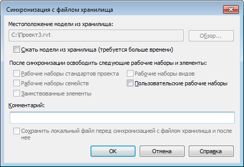 При работе с проектом с совместным доступом используйте команду «Синхронизировать с файлом хранилища», чтобы сохранить локальные изменения в модели из хранилища.