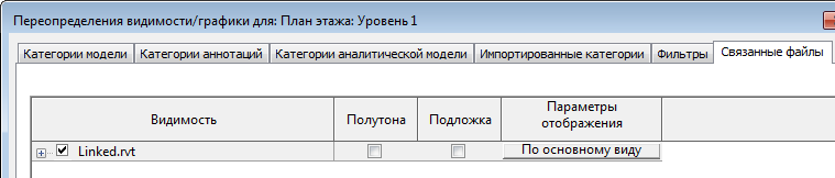 Если требуется, чтобы фильтр и другие параметры переопределения графики, примененные к виду главной модели, были также применены к вложенным и связанным моделям на этом виде, следует принять режим "По основному виду" (действующий по умолчанию).