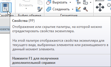 Когда курсор задерживается на инструменте, находящемся на ленте, по умолчанию Revit отображает всплывающую подсказку. Подсказка содержит краткое описание данного инструмента. Если задержать курсор на ленте еще некоторое время, отображается дополнительная информация (если имеется). Во время отображения всплывающей подсказки можно нажать клавишу F1 для отображения контекстной справки, которая предоставляет информацию об этом инструменте в большем объеме.