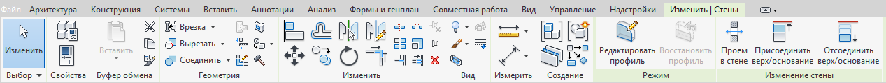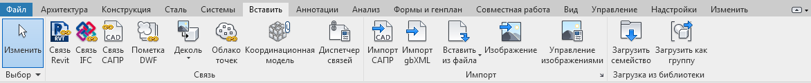 Лента отображается при создании или открытии файла. Она содержит все инструменты, необходимые для создания проекта или семейства.