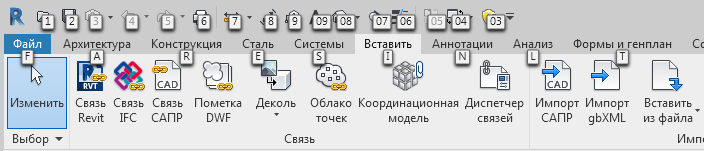 Для отображения клавишных подсказок нажмите клавишу Alt.