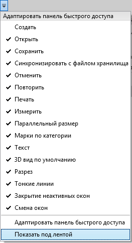 Панель "Быстрый доступ" может отображаться над лентой или под ней. Для изменения настройки отображения на панели "Быстрый доступ" выберите раскрывающийся список "Адаптировать панель быстрого доступа"