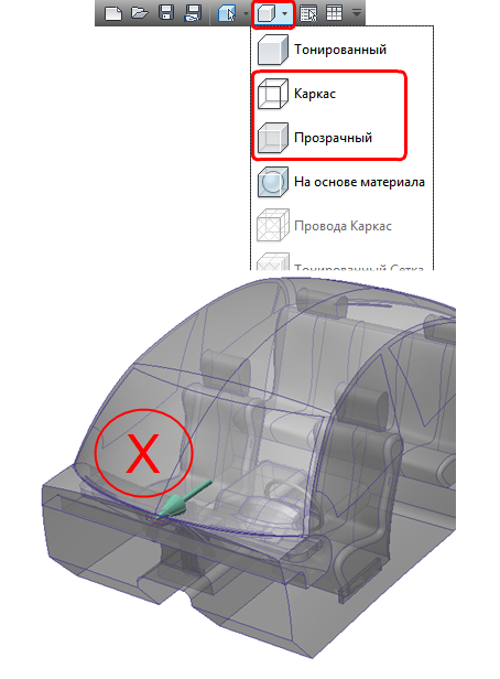 11. Измените внешний вид модели на "Тонированный" и поверните модель. Выберите две дуговые поверхности в задней части кабины. Нажмите кнопку Редактировать в контекстной панели инструментов.