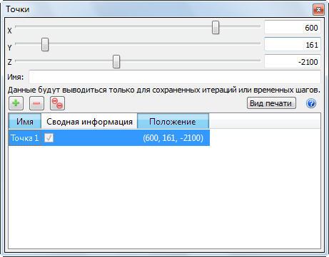 4. Задайте координаты точки в качестве требуемых результатов, как: 600,161, -2100. Имя точки " задниий пол". Щелкните значок +, чтобы создать точку результата. Установите флажок Сводка, чтобы создать точку, доступную для сравнения в других проектах.
