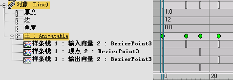 在“摄影表”模式下,主点控制器在“轨迹视图”中显示为带有绿色关键点的轨迹。主轨迹下的子轨迹包含所有已设置动画的顶点、控制点和向量。