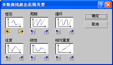 “参数曲线超出范围类型”对话框中提供了四种重复动画的方法和两种应用线性值的方法。