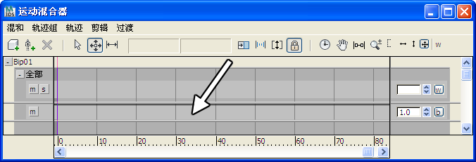在混合器中,您可以使用平衡轨迹控制自动平衡补偿的程度。在 Biped 添加到混合器时,将为其自动创建一个平衡轨迹。