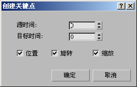 可以使用时间滑块将一个时刻的变换值复制到另一个时刻来创建变换关键点。要指定想创建的关键点类型和关键点值的源以及目标时间,请右键单击时间滑块显示“创建关键点”对话框。