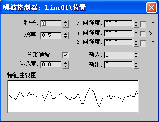 噪波控制器会在一系列帧上产生随机的、基于分形的动画。噪波控制器可设置参数:它们作用于一系列帧上但不使用关键点。