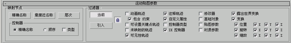 此卷展栏提供了自动映射动画轨迹和过滤轨迹的控件以减少混乱。