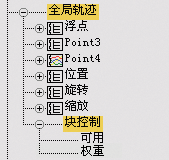 显示块名称及其相关轨迹。最初这些子轨迹是用于创建块的轨迹的副本。可以在这些轨迹上编辑关键点来更改块的行为。