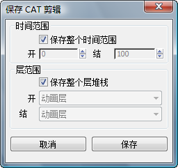 将一个或多个层保存为剪辑。单击该按钮将打开一个文件对话框,从中可以指定剪辑的名称和位置;单击“保存”,系统将打开“保存 CAT 剪辑”对话框。