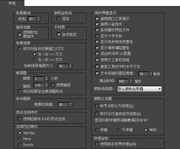 在“首选项设置”对话框的“常规”面板上,可以设置用于用户界面和交互操作的选项。
