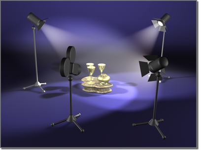 放置灯光和摄影机来完成场景就像在拍电影以前在电影布景中放置灯光和摄影机一样。