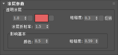 通过“涂层参数”卷展栏,您可以为材质添加透明涂层,并让透明图层位于所有其他明暗处理效果之上。
