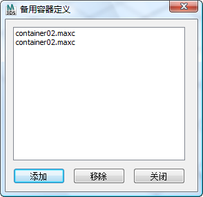 当您关闭容器时,其内容保存到 MAXC 文件并被场景引用,因此它可以作为源容器继承到任何场景中。关闭容器可以提高场景性能。