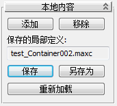 “本地内容”卷展栏可用于编辑、刷新和保存在工作站上本地打开和保存的容器。