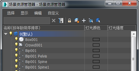替换“场景资源管理器”中的列(除“名称”以外的所有列):