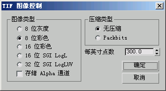要打开“TIF 图像控制”对话框,请单击“渲染输出文件”对话框上的“保存”或“设置”。