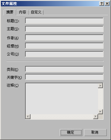 使用“文件属性”可以输入有关场景的信息,以后可以通过 Windows 来读取这些信息,它们使用诸如 Windows 资源管理器这样的程序来查看场景文件的属性。
