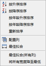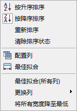 注: 如果在列标题右侧的空白区域单击鼠标右键,菜单将仅包含“配置列”和“最佳拟合(所有列)”命令。