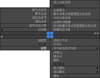 在场景资源管理器的某列中单击鼠标右键时会打开以下四元菜单: