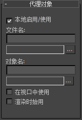 在场景中选择一个外部参照对象后,“修改”面板上将同时出现“代理对象”卷展栏和“外部参照对象”卷展栏。使用这些控件指定低分辨率的对象,以代替源外部参照对象,从而简化视口中的处理,这对于测试渲染是可选的。