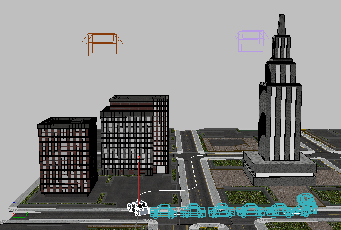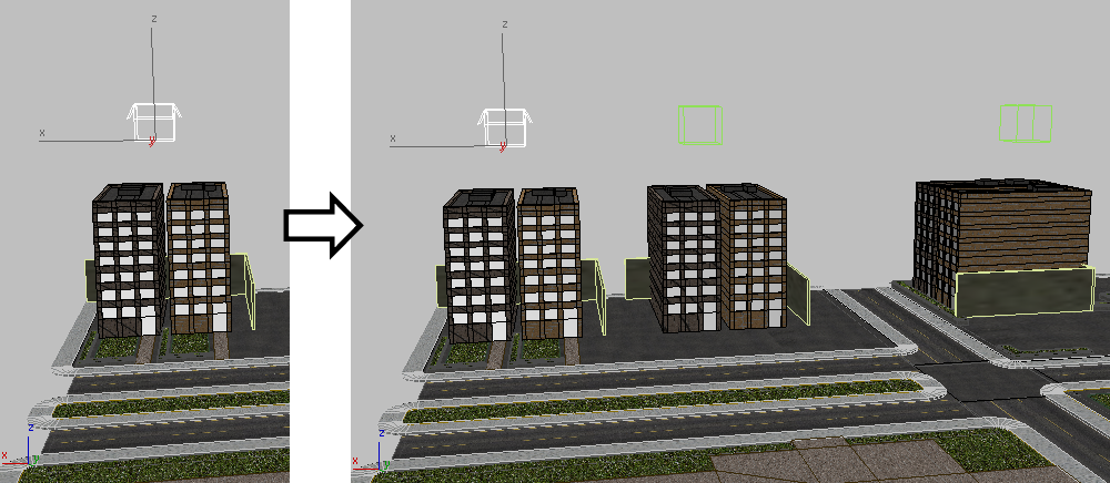 虽然容器内容在视口中仍可见,但实际上它们已从场景中移除(例如,尝试选择内容实际会选择容器)。现在,场景将从其保存位置引用 Block_A.maxc 文件。