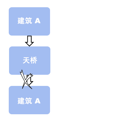 但是,3ds Max 检测循环外部参照且不允许这样做,除非“建筑物 A”场景和“天桥”场景将其外部参照标记为“叠加”。