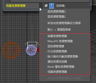 “本地场景资源管理器”子菜单。选择任何项目以切换相应的本地场景资源管理器。