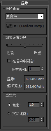 当前可见点数和对象中的总点数将分别显示在“详细级别”设置组底部的只读字段“显示的点数”和“总点数”中。