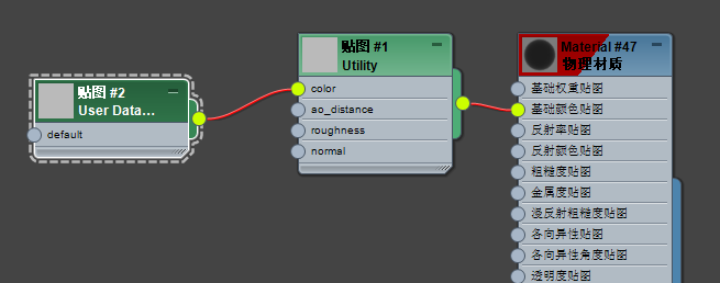 - 将工具节点连接到物理材质的“基础颜色贴图”输入。