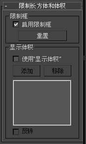 此工具仅支持“长方体基本体”、“球体基本体”和“平面基本体”。如果采用平面基本体,在平面后面(即非渲染一侧)的点将位于显示体积内部。