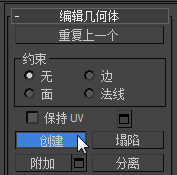 - 转到“多边形”子对象层级中的可编辑多边形对象,然后在“编辑几何体”卷展栏上,启用“创建”。