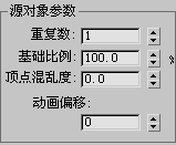- 调整“变换”卷展栏上的微调器,设置源对象的随机变换偏移。