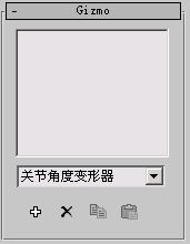 “Gizmo”卷展栏中的控件用于根据关节的角度变形网格,以及将 Gizmo 添加到对象上的选定点。卷展栏包括一个列表框(其中包含此修改器的所有 Gizmo)、一个当前类型的 Gizmo 的下拉列表和四个按钮(“添加”、移除、“复制”和“粘贴”)。
