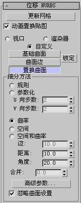 “置换 NURBS ”卷展栏用于选择用哪种曲面近似设置产生网格。